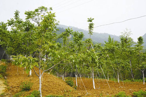蒙亨村的的1500畝空閑土地全部栽上了花椒,如果精細管理,這些花椒4年就能掛果,7年就能達到盛果期。到時候畝產經濟效益6000元,村里人均增收4000元;鄧鄉周家莊的啟動退耕還林工程,種上干果經濟林,全部種上核桃樹,現在整地,過兩天就能栽苗了。再過上四、五年,這些核桃到了產果期,畝產效益2000元,一年可收入1萬多元。