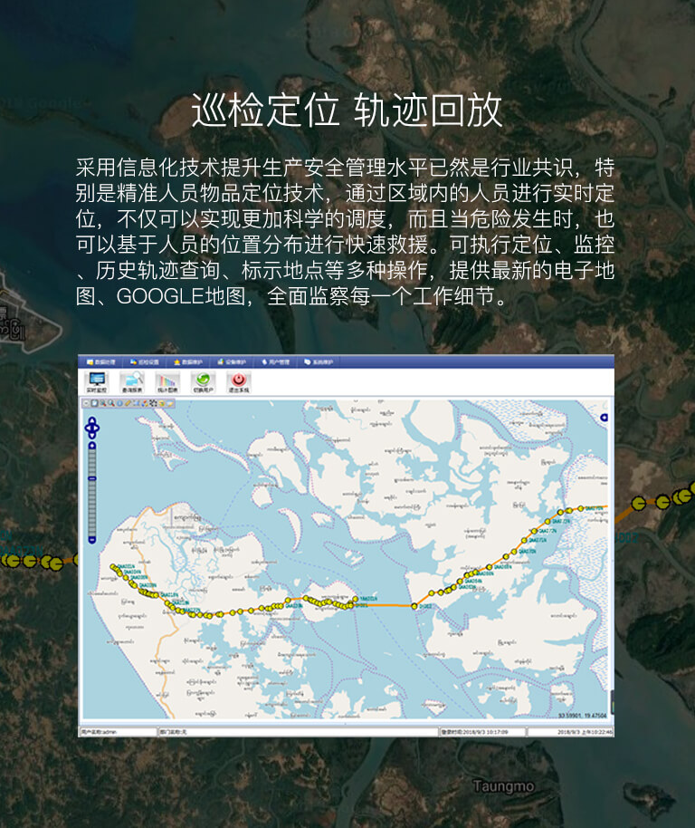巡檢器通過(guò)北斗定位芯片、會(huì)對(duì)數(shù)據(jù)完成感知、存儲(chǔ)和傳輸,并在系統(tǒng)后臺(tái)軟件上實(shí)時(shí)顯示人員定向! 管理者通過(guò)PC端或移動(dòng)客戶端輕松實(shí)現(xiàn)管理,并消除隱患,保障安全。 產(chǎn)品工業(yè)級(jí)防爆IP67,無(wú)漏檢、免布點(diǎn)、定位精度<5米,定位軌跡回放、4G網(wǎng)絡(luò)實(shí)時(shí)傳輸。 整合管理功能:人員定位、巡檢、考勤、軌跡回放、監(jiān)督管理等。