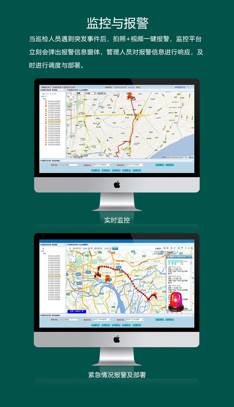當(dāng)巡查人員遇到突發(fā)事件后,觸摸手動報警,監(jiān)控平臺立刻彈出報