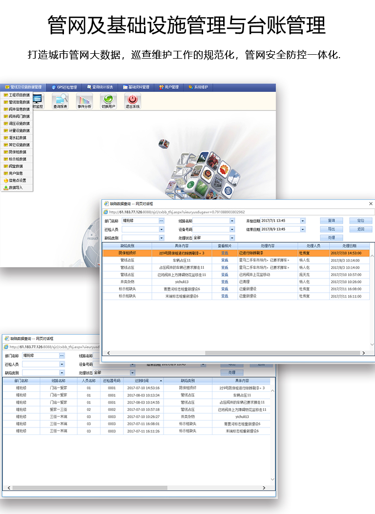 打造城市管網(wǎng)大數(shù)據(jù),巡查維護(hù)工作的規(guī)范化,管網(wǎng)安全防控一體化。