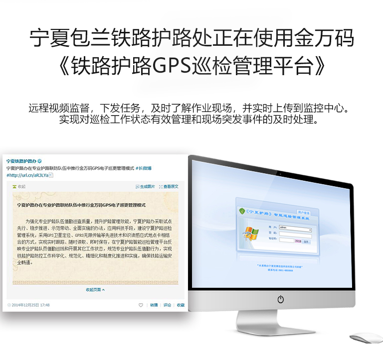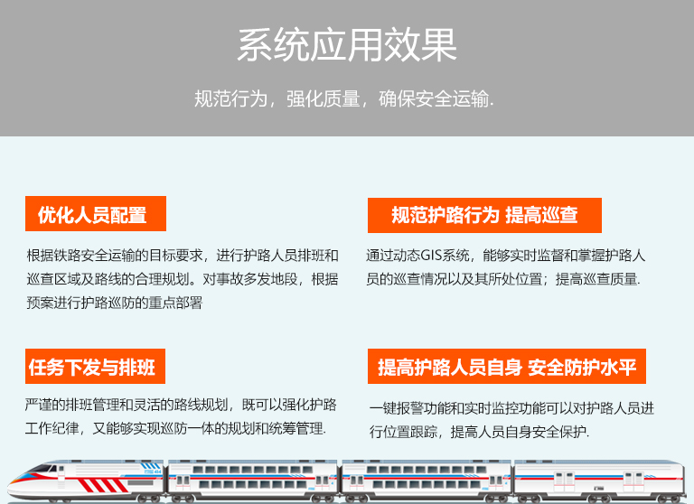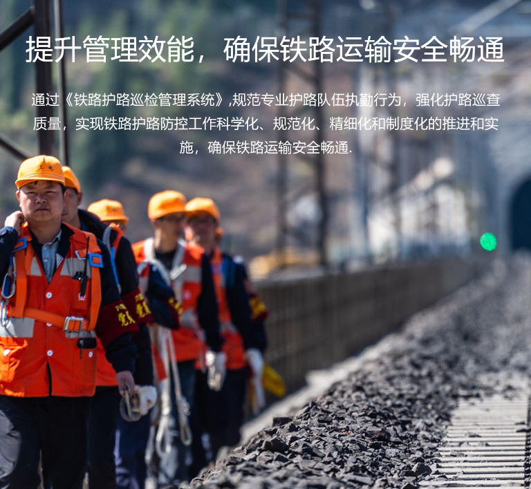 通過《鐵路護路巡檢管理系統》,規范專業護路隊伍執勤行為,強化護路巡查質量,實現鐵路護路防控工作科學