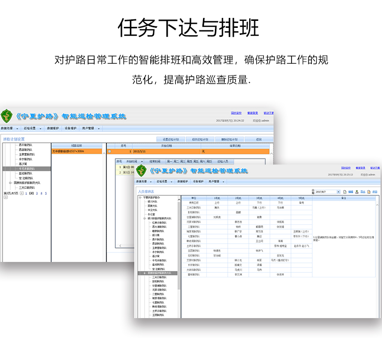 對護路日常工作的智能排班和高效管理,確保護路工作的規范化,提高護路巡查質量。